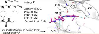 12、Ke Zheng, Sarah Iqbal, Pamela Hernandez, HaJeung Park, Philip V. LoGrasso,* and Yangbo Feng* “Design and Synthesis of Highly Potent and Selective JNK3 Inhibitors: SAR Studies on Aminopyrozal Derivatives” J. Med. Chem. 2014, 57, 10013-10030