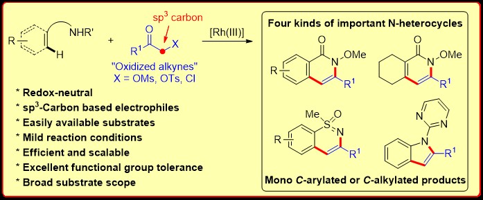 127.D.-G. Yu, F. de Azambuja, F. Glorius*, α-MsO/TsO/Cl Ketones as Oxidized Alkyne Equivalents: Redox-Neutral Rhodium(III)-Catalyzed C–H Activation for the Synthesis of N-Heterocycles. Angew. Chem. Int. Ed. 2014, 53, 2754. (Top 6 most accessed ACIE paper in Feb. 2014, Highlighted by Synfacts 2014, 10, 567.)
