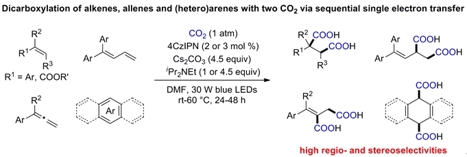 69.T. Ju, Y.-Q. Zhou, K.-G. Cao, Q. Fu, J.-H. Ye, G.-Q. Sun, X.-F. Liu, L. Chen, L.-L. Liao, D.-G. Yu*, Dicarboxylation of alkenes, allenes, and (hetero)arenes with CO2 via visible-light photoredox catalysis. Nat. Catal. 2021, 4, 304–311.