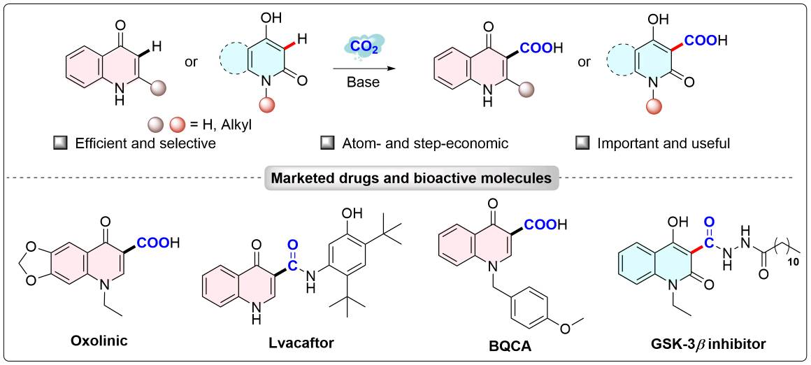 15.C. Li,† W. Zhang,† Y. Xu, Y. Su, T.-Y. Gao, J.-H. Ye, L. Song,* D.-G. Yu*, Carboxylation of C(sp2)−H bonds in quinolone derivatives with CO2: facile synthesis of quinolone carboxylic acids. Org. Chem. Front. 2025, 12, 4499–4505. († Equal contribution.)