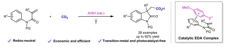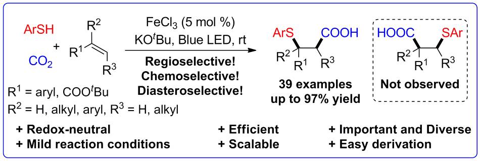90.Q. Fu, Z.-Y. Bo, J.-H. Ye, T. Ju, H. Huang, L.-L. Liao, D.-G. Yu*, Transition metal-free phosphonocarboxylation of alkenes with carbon dioxide via visible-light photoredox catalysis. Nat. Commun. 2019, 10, 3592.