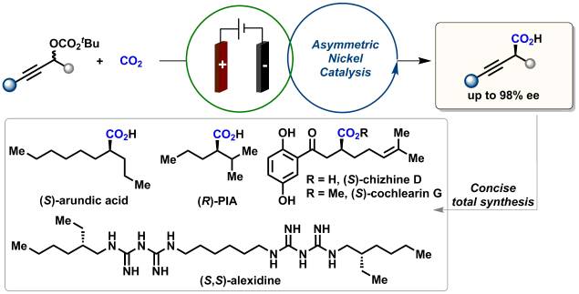 23.Q. Hu, B. Wei, M. Wang, M. Liu, X.-W. Chen, C.-K. Ran, G. Wang, Z. Chen, H. Li, J. Song, D.-G. Yu*, C. Guo*, Enantioselective nickel-electrocatalyzed reductive propargylic carboxylation with CO2. J. Am. Chem. Soc. 2024, 146, 14864–14874.