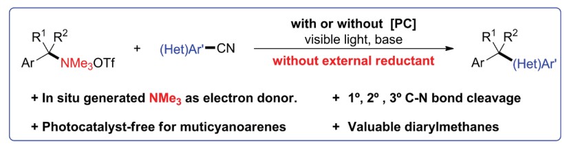 88.M. Miao, L.-L. Liao, G.-M. Cao, W.-J. Zhou,* D.-G. Yu*, Visible-light-mediated external-reductant-free reductive cross coupling of benzylammonium salts with (hetero)aryl nitriles. Sci. China Chem. 2019, 62, 1519. (Invited Contribution to SPECIAL ISSUE: Organic Free Radical Chemistry)