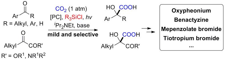 70.G.-M. Cao, X.-L. Hu, L.-L. Liao, S.-S. Yan, L. Song, J. J. Chruma, L. Gong, D.-G. Yu*, Visible-light photoredox-catalyzed umpolung carboxylation of carbonyl compounds with CO2. Nat. Commun. 2021, 12, 3306.