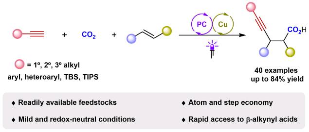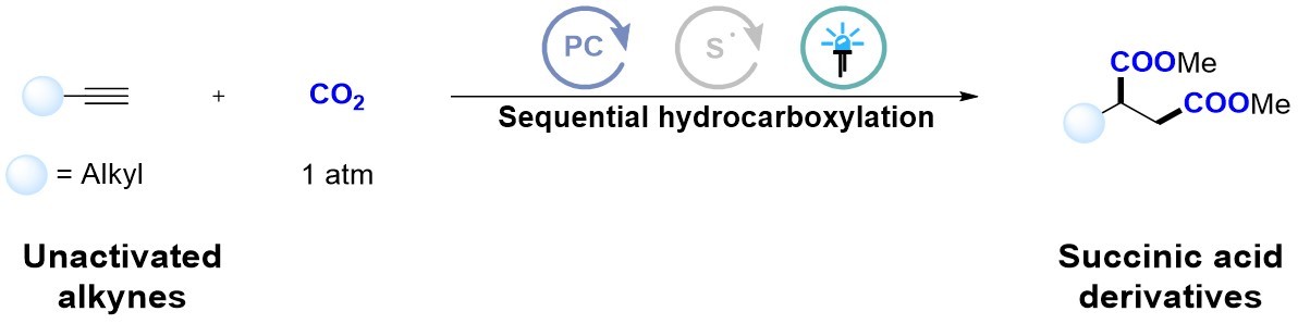 2.W. Wang,† S.-S. Yan,† Y. Liu, J.-S. Zhu, J.-W. Yang, J.-C. Xu, Y.-Y. Tao, J.-C. Li, L. Song, J.-H. Ye,* D.-G. Yu*, Photocatalytic 1,2-Dicarboxylation of Unactivated Alkynes with CO2. J. Am. Chem. Soc. 2025, 147, 23715-23723. († Equal contribution.)