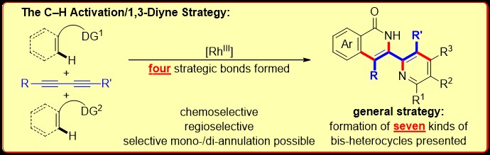 125.D.-G. Yu, F. de Azambuja, T. Gensch, C. G. Daniliuc, F. Glorius*, The C–H Activation/1,3-Diyne Strategy: Highly Selective Direct Synthesis of Diverse Bisheterocycles by RhIII-Catalysis. Angew. Chem. Int. Ed. 2014, 53, 9650. (Highlighted by Synfacts 2014, 10, 1023)