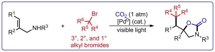 103.L. Sun, J.-H. Ye, W.-J. Zhou*, X. Zeng, D.-G. Yu*, Oxy-Alkylation of Allylamines with Unactivated Alkyl Bromides and CO2 via Visible-Light-Driven Palladium Catalysis. Org. Lett. 2018, 20, 3049. (Top 8 most read papers in May, 2018. Highlighted by CBG.)