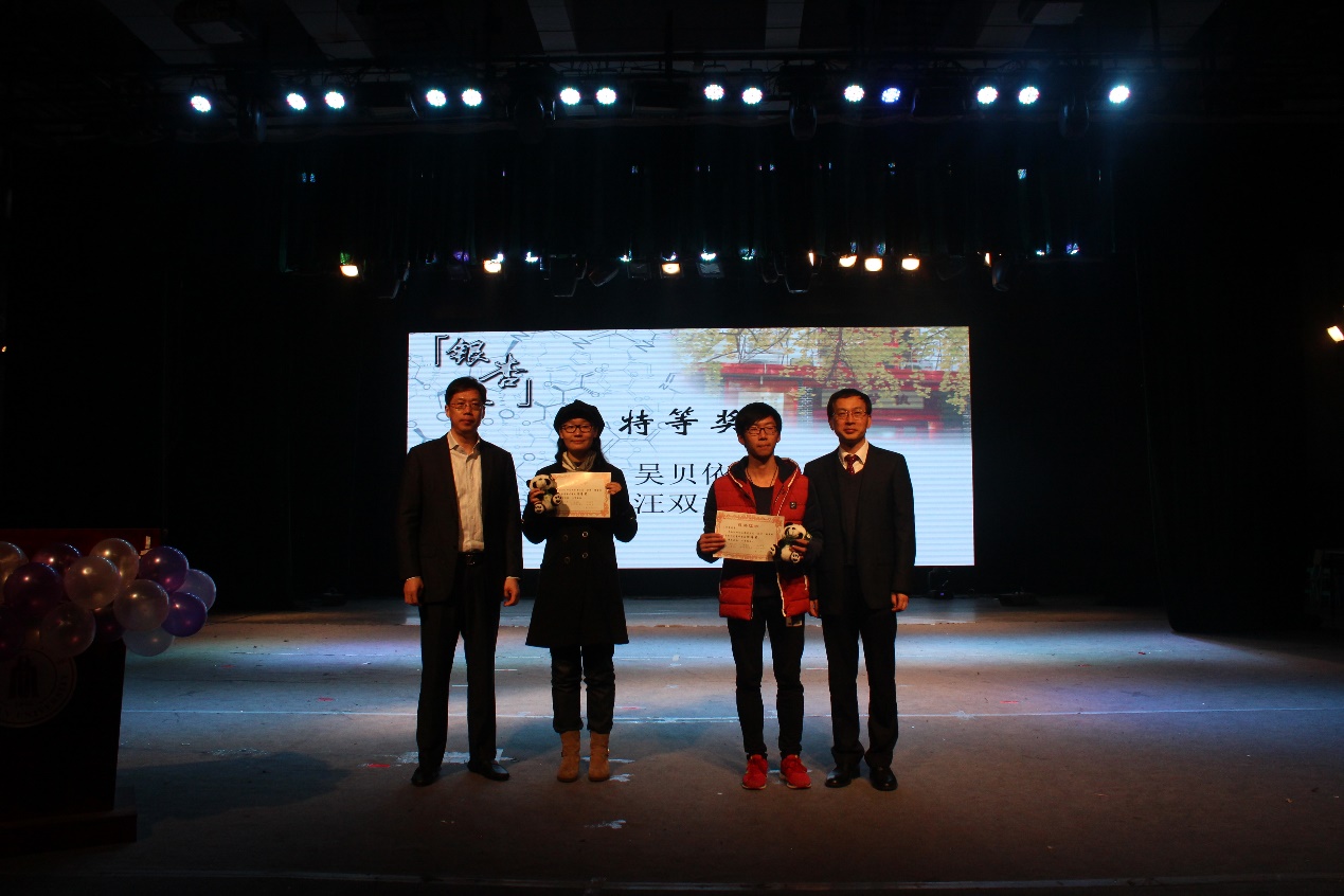 首先,英国正版365官方网站艺术团带来的精彩舞蹈《茉莉花》为颁奖晚会拉开序幕。四川大学第三届“银杏杯”化学知识竞赛颁奖典礼,由谢均老师主持。余孝其院长对竞赛内容进行了详细的介绍,魏于全副校长、王玉忠院士分别做出讲话,表达了对同学们认真学习科学文化知识、开拓创新、全面发展的殷切希望,郭勇教授宣读了获奖名单,并由到场嘉宾向获奖同学颁奖。王琦校友与大家分享了自己的人生经历,鼓励同学们认真学习专业知识、全面拓展自己的才能。