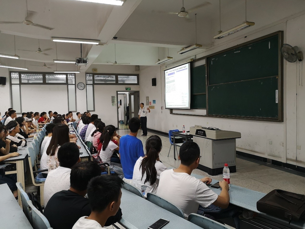 冯老师还向同学们介绍了四川大学化学学科近年来取得的荣誉、正在进行的的课题等内容,讲出了身为川大人的自豪。同时,鼓励同学们多到实验室动手做实验,多与老师、同学们交流。最后,冯老师语重心长地告诫2018级新同学们,到大学后一定要加倍努力,坚定信念、敢于创新、实事求是、强化责任。要有肚量去容忍那些不能改变的事,有勇气去改变那些可能改变的事,有智慧去区别上述两类事。