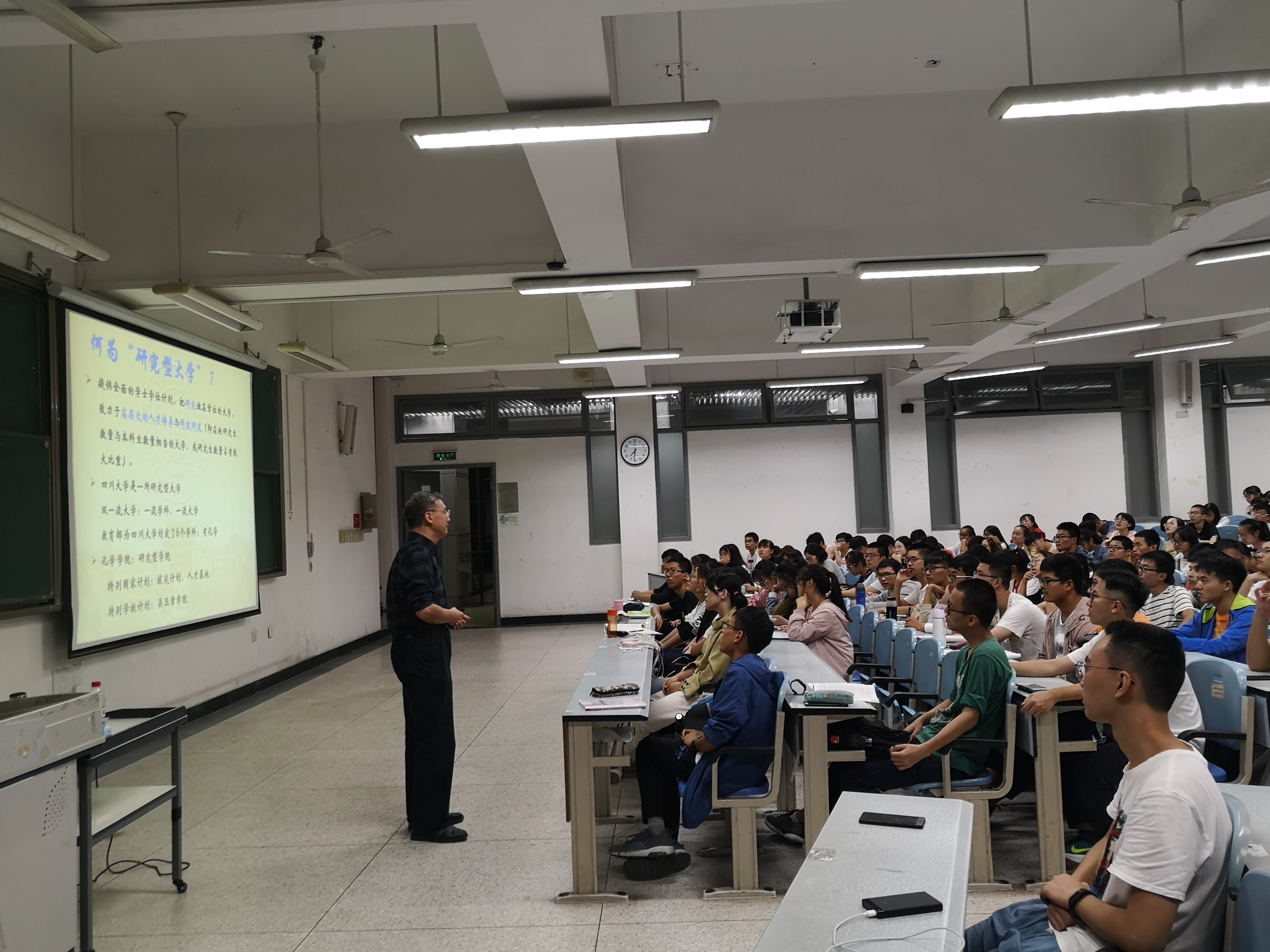 2018年9月25日晚,在江安校区综合教学楼C座107室,胡常伟教授为我院2018级新生带了“创新思维与交流”系列讲座的第二讲。