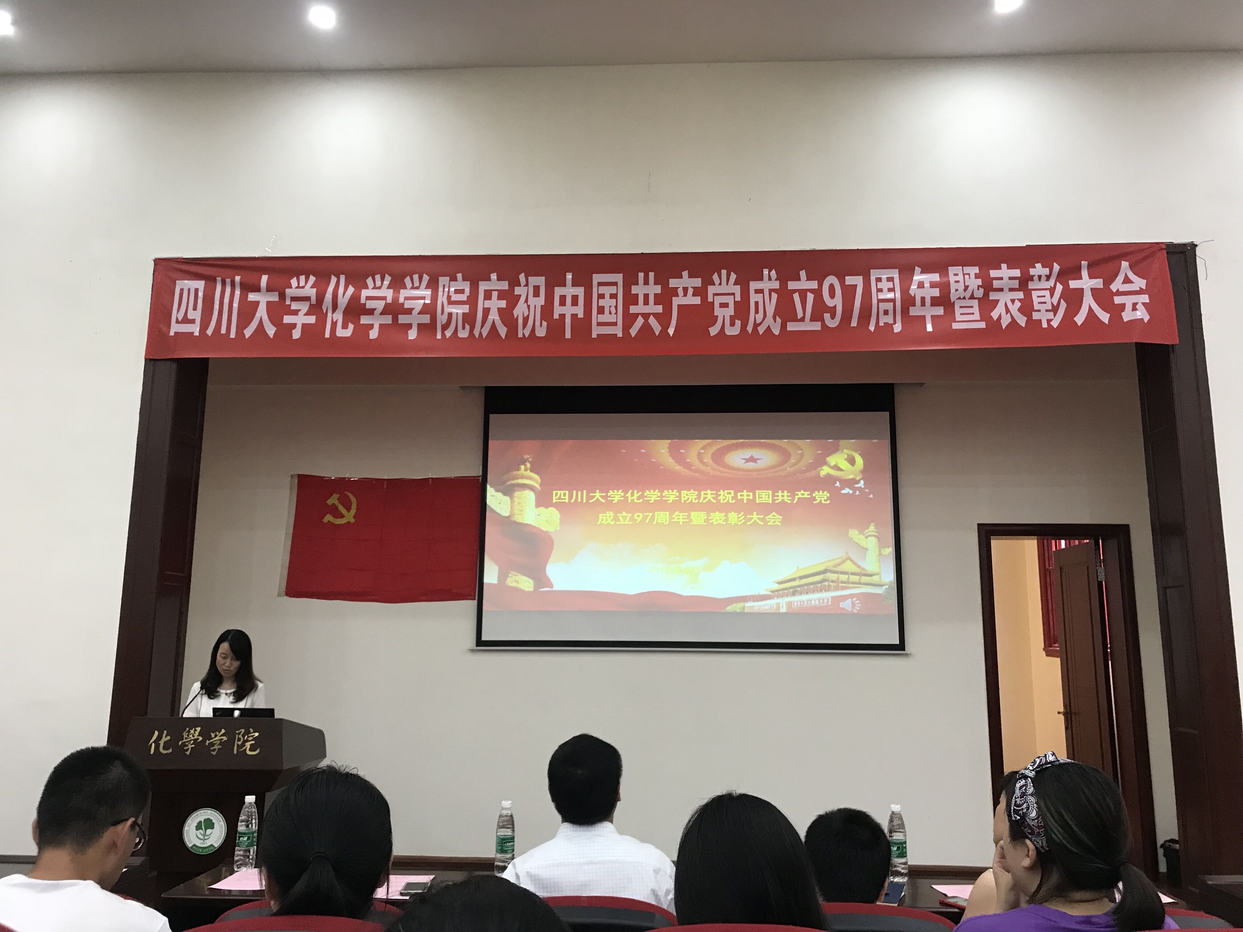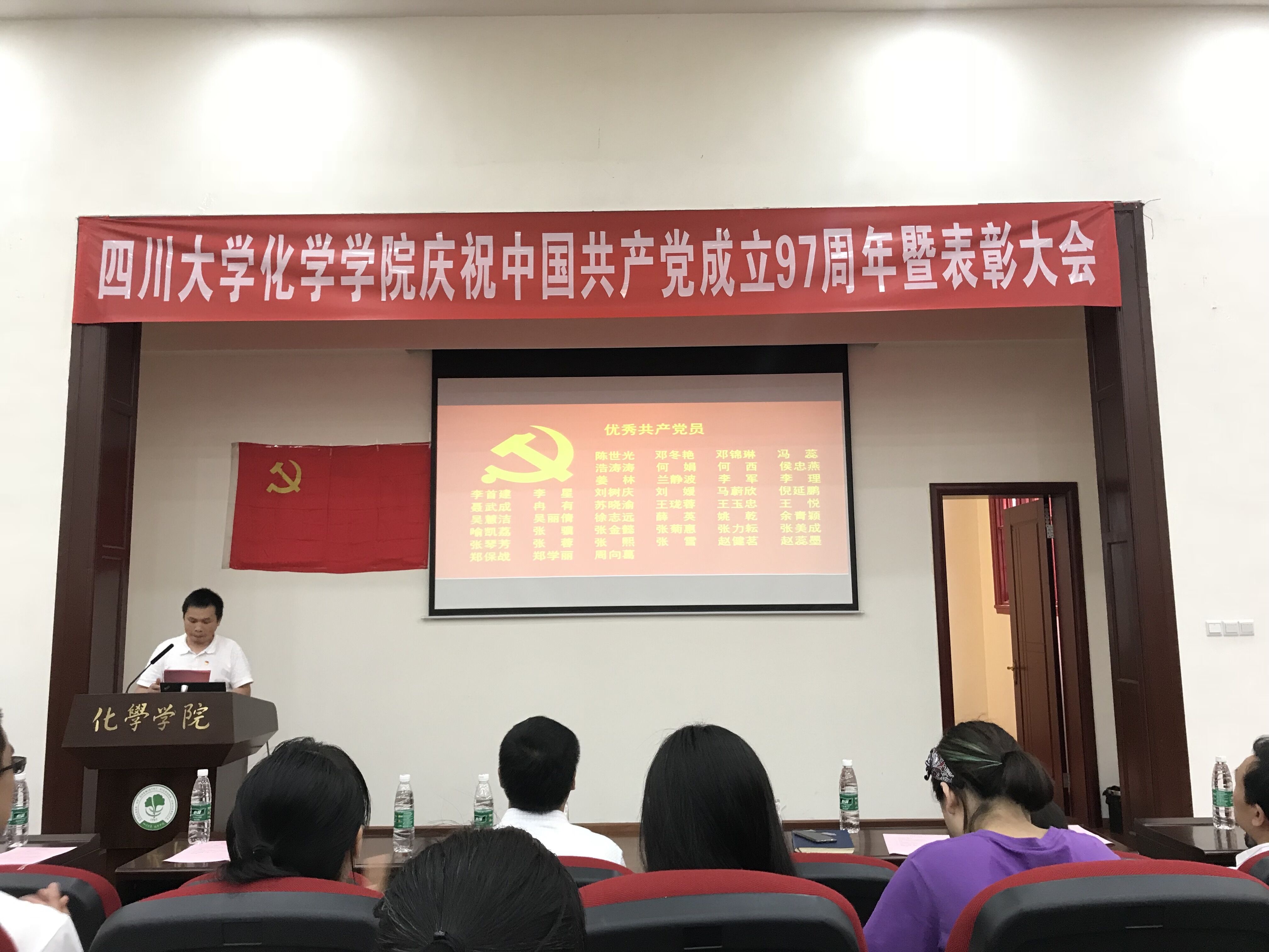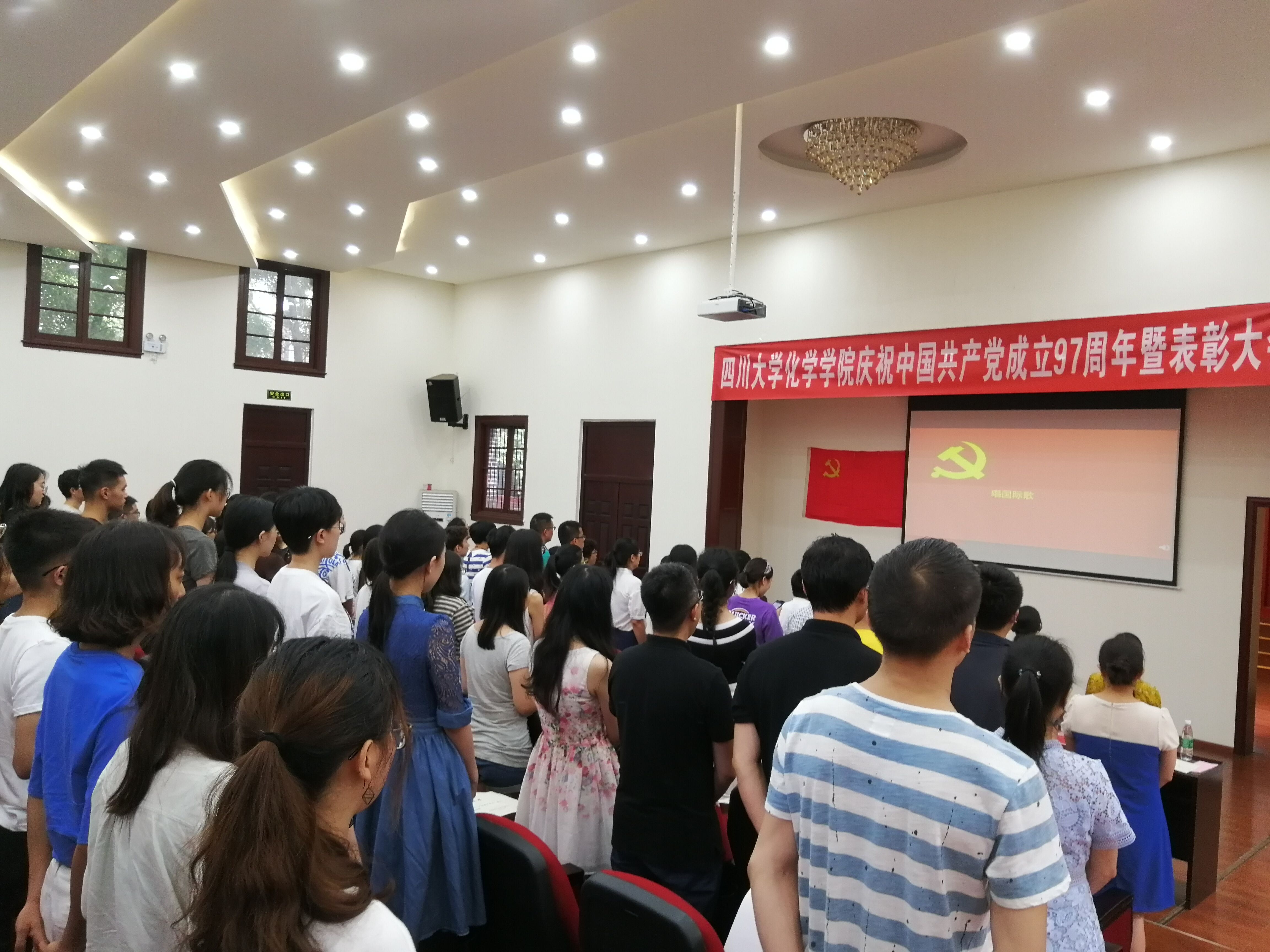 2018年6月29日下午,英国正版365官方网站庆祝中国共产党成立97周年暨表彰大会在化学馆321报告厅隆重举行。英国正版365官方网站党委书记王智猛同志、党委副书记谢均同志、副院长郑成斌同志、学院党委委员、党支部书记、优秀共产党员、优秀党务工作者及党员代表出席了大会。大会由谢均同志主持。