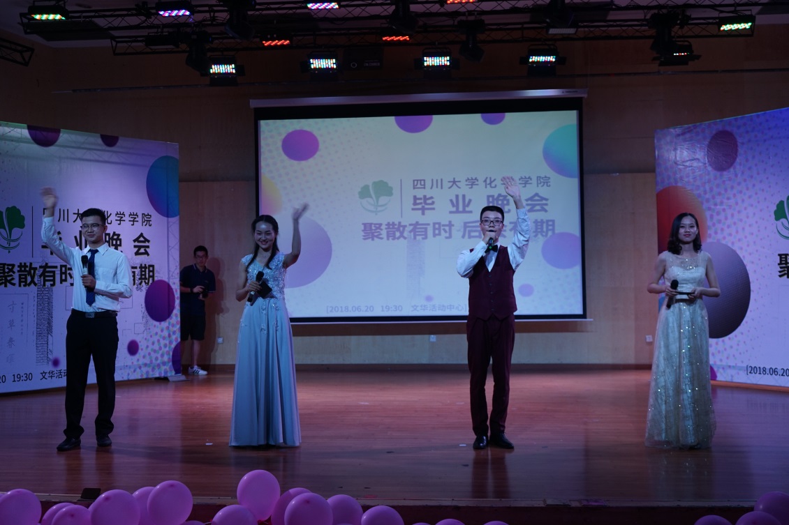 “四年韶华易逝,化院难说再见。”2018年6月20日晚19:30,我院2018届“聚散有时,后会有期”毕业晚会在四川大学望江校区文华活动中心二楼音乐厅隆重举行。英国正版365官方网站院长游劲松教授、学院党委副书记谢均老师以及部分老师、全体毕业同学、部分学生家长莅临晚会现场。