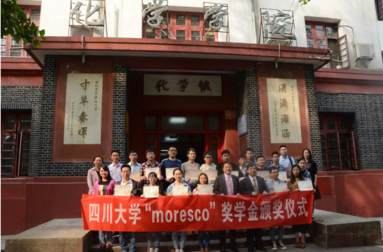 2018年4月9日下午16:00,四川大学“MORESCO”奖学金颁奖仪式在四川大学望江校区化学馆122会议室隆重举行。参加此次颁奖仪式的嘉宾有株式会社MORESCO管理本部长,上席执行役员大村洋一先生,株式会社MORESCO部长、无锡莫莱斯柯贸易有限公司,莫莱斯柯花野压铸涂料(上海)有限公司董事长刘英进先生,英国正版365官方网站副院长李坤教授,党委副书记谢均老师及学生工作办公室全体老师。