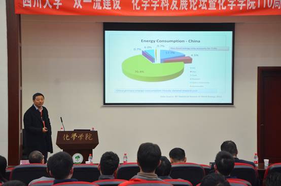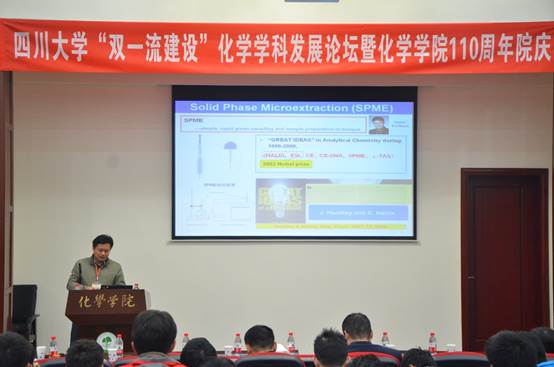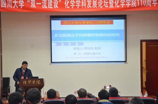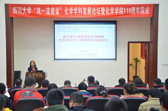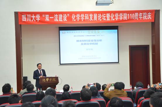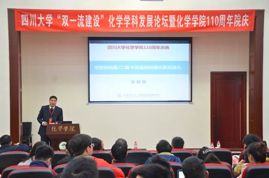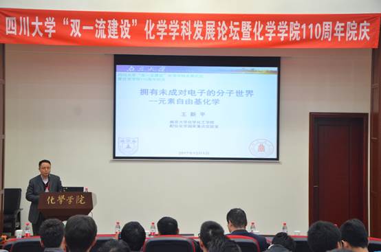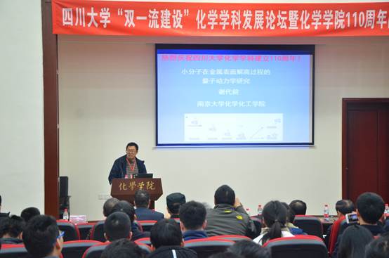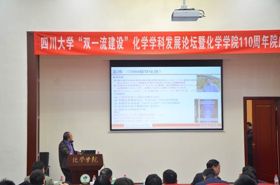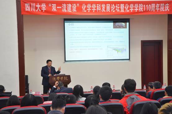 2017年12月01日,四川大学“双一流建设”化学学科发展论坛暨英国正版365官方网站110周年院庆系列活动之学术讲座活动在四川大学望江校区化学馆321成功举办。本次活动邀请了川大化院的十六位学界杰出校友和学术带头人:院外有陈芬儿院士、赵宇亮院士、谢代前教授、汪小琳研究员、叶国安研究员、孟鸿教授、龙亚秋研究员、欧阳钢锋教授、高毅勤教授、程震教授、马丁研究员、周绍兵教授、王新平教授和张新刚研究员等,院内有冯小明院士和王玉忠院士。英国正版365官方网站游劲松院长为此次学术报告致辞,学院近千名师生参加了本次活动。