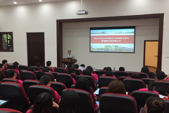 7月12日晚上,我院2017年优秀大学生暑期夏令营开营仪式在学院学术报告厅举行。本年度夏令营受到了同学们的广泛支持,来自四川大学、湖南大学、兰州大学、南京大学、南开大学等全国40所高校的145余名优秀本科生参加了本次活动。学院王智猛书记、游劲松院长出席了此次活动,开营仪式由教学科研科科长姜林老师主持。