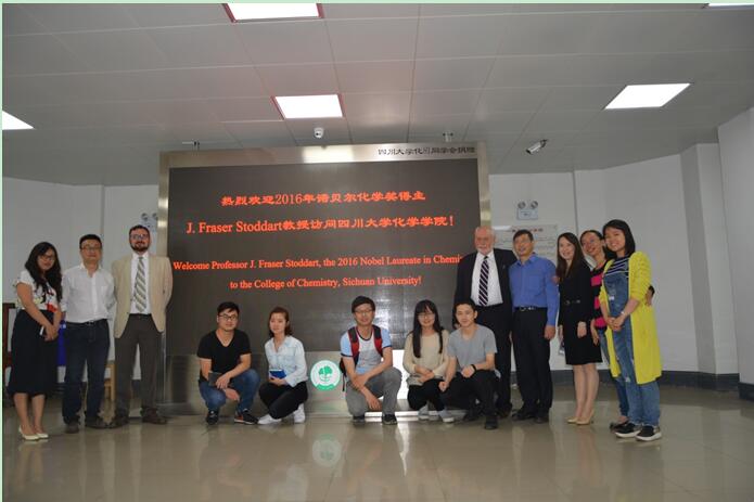 报告结束后,Stoddart教授与师生进行亲切交流并合影留念,他的健谈与平易近人给大家留下了深刻的印象。早在2016年10月,学院院长余孝其教授带领拔尖学生代表团访问美国西北大学时,正值2016年诺贝尔化学奖公布,Stoddart教授在百忙中接待了师生访问团,为师生做了一场学术报告并表示会在适当的时候访问四川大学。此次Stoddart教授访问四川大学既是对去年代表团到访的友好回访,也为四川大学及化学学科的国际化发展起到了促进作用。