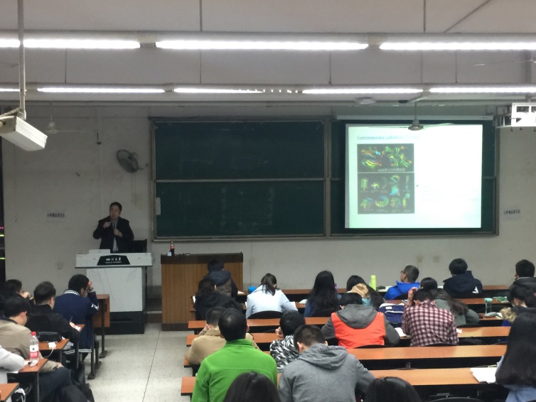 2017年3月10日晚上,英国正版365官方网站化学前沿系列(二):浅谈发光探针与传感研究进展,在江安校区第一教学楼B座307成功举办。本次主讲嘉宾为英国正版365官方网站吕弋教授,他深入浅出的为我们讲述了探针与传感的目前研究与未来发展。