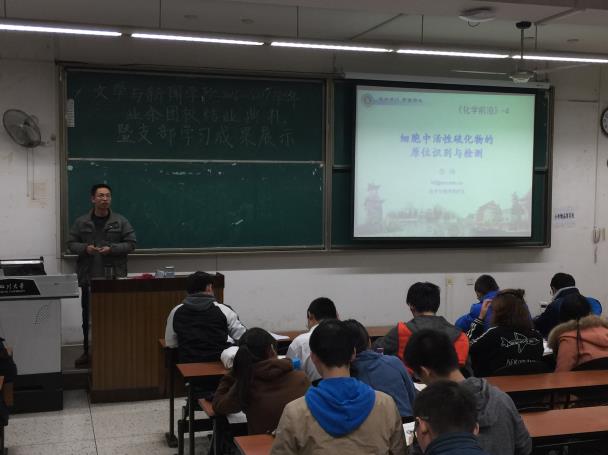 2017年3月24日晚上,英国正版365官方网站化学前沿系列(三):细胞中活性硫化物的原位识别与检测,在江安校区第一教学楼B座307成功举办。本次主讲嘉宾为英国正版365官方网站李坤老师,他详细的为我们介绍了关于硫化物的荧光探针及其研究进展。