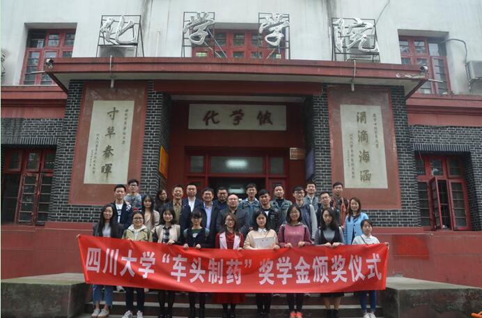 2017年4月6日上午10:00,四川大学“车头制药”奖学金颁奖仪式在四川大学化学馆122会议室隆重举行。浙江车头制药有限公司人力资源总监徐建江先生、浙江八巨药业副总经理蒋志永先生、浙江车头制药人行部部长冯勇翔先生、浙江八巨药业人行部朱沐子女士,英国正版365官方网站党委书记王智猛老师、党委副书记谢均老师,华西药学院党委副书记胡晓娟老师,化工学院党委副书记李天友老师,华西药学院学生科科长章程老师,英国正版365官方网站杜晓燕老师参加了本次颁奖仪式。颁奖仪式由英国正版365官方网站党委副书记谢均老师主持。