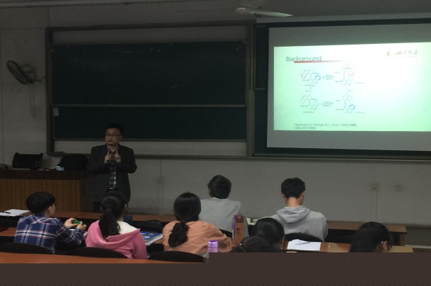 2017年4月7日晚上,英国正版365官方网站化学前沿系列(五):超分子光化学简介,在江安校区第一教学楼B座307成功举办。本次主讲嘉宾为英国正版365官方网站杨成教授,他生动有趣的为我们讲解了目前的分子机器。