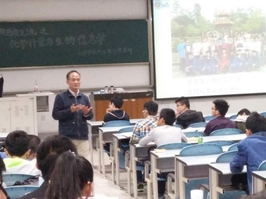 2016年10月18日下午,英国正版365官方网站创新思维交流系列(四):化学与生物信息学漫谈,在江安校区综合楼C107成功举办。本次主讲嘉宾为英国正版365官方网站副院长李梦龙教授,他为我们带来了一场关于化学与生物信息学的介绍的饕餮盛宴。全体2016级本科同学参加了这次讲座。