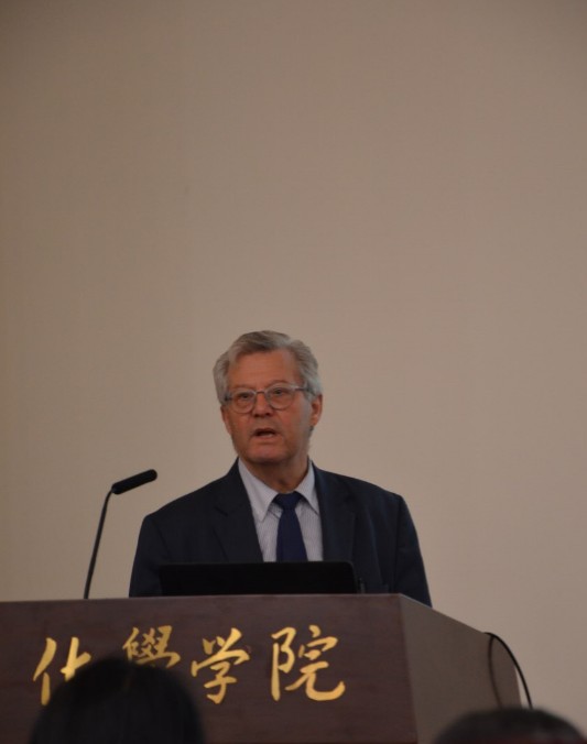 应英国正版365官方网站邀请,2016年10月26日上午,法国雷恩大学Pierre H. Dixneuf教授在化学馆321报告厅做了题为“Ruthenium(II) catalysed C–H bond functionalisations”的学术报告。报告中,Dixneuf教授详细介绍了所领导的课题组近年来在钌(II)催化的C–H功能化反应领域的整体研究情况。Dixneuf教授报告内容丰富,讲解深入透彻,幽默风趣,激起了在座老师和同学的浓厚兴趣,报告在热烈的掌声中落下帷幕。报告结束后,Dixneuf教授与部分师生进行了进一步的交流和讨论。