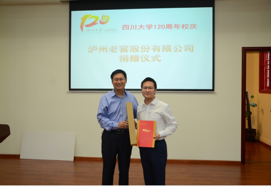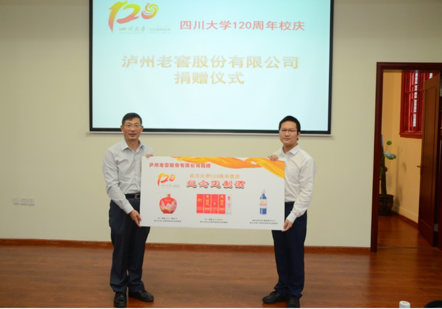 2016年9月27日上午,四川大学120周年校庆泸州老窖股份有限公司捐赠仪式在四川大学望江校区化学馆321报告厅举行。2008级优秀校友、泸州老窖贵宾服务有限公司总经理助理曾程,英国正版365官方网站院长余孝其,党委书记王智猛,副院长王玉忠,党委副书记谢均及部分返校校友出席了本次捐赠仪式。