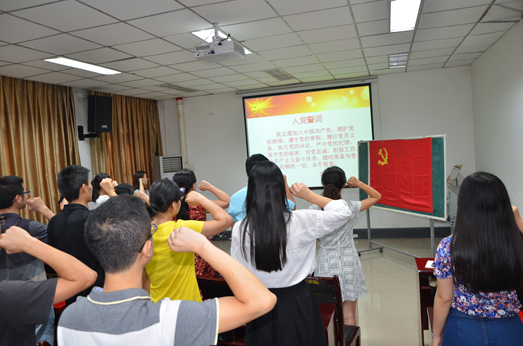 随后全体肃立,在张愉老师带领下宣读了入党誓词,合唱《没有共产党就没有新中国》与《国际歌》,为党的95岁生日送上祝贺与祝福。
