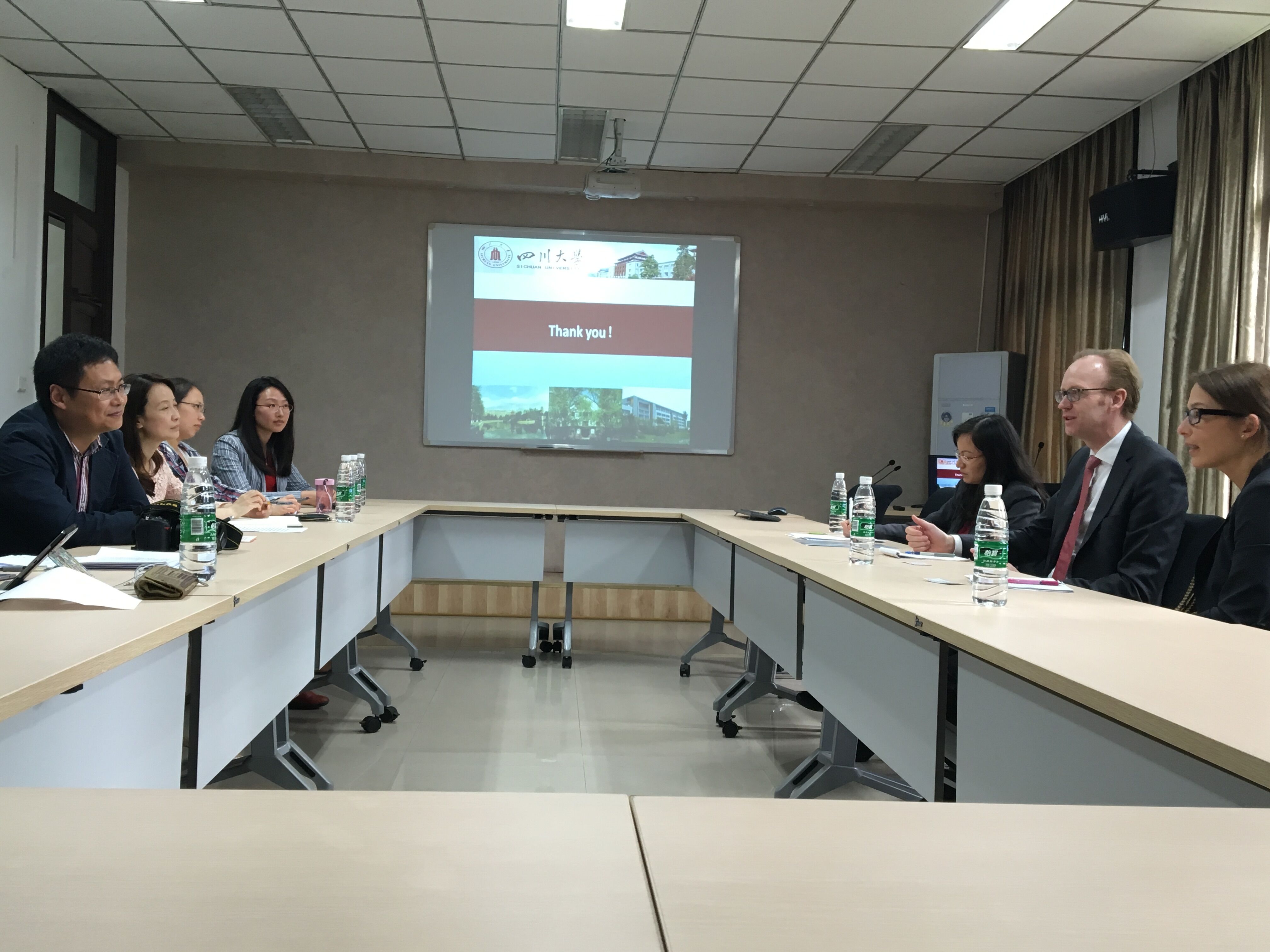 2016年4月13日下午,德国吉森大学媒介与交互研究中心主任Henning Lobin教授、国际处处长JuliaVolz女士、中国项目专员程女士访问英国正版365官方网站,学院党委书记王智猛老师、党委副书记谢均老师、于珊珊副研究员、教学科研科长姜林及外事秘书马晓爽参加座谈会,国际合作交流处刘颖老师陪同代表团来访。