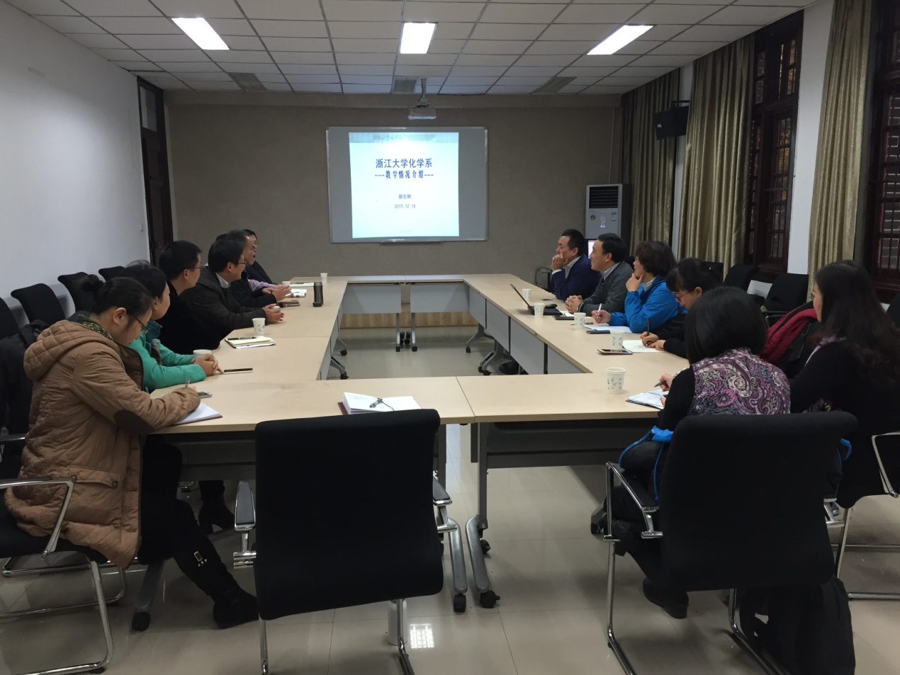 首先,胡吉明教授分别从浙江大学化学系发展情况、师资队伍、基本设施与条件和人才培养等五个方面对本科教学基本情况进行了介绍。此外,胡教授阐述了近几年在教学改革方面进行的有益尝试,诸如:设置课程组、增加主干理论课的学时数、全面助教制度等。李梦龙教授介绍了我院教学的基本情况和近几年的改革成果。会上,各位老师对专业课程设置、教学组织建设、拔尖人才培养、助教制度等多个本科人才培养方面的问题进行了深入的讨论。