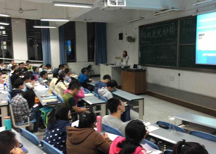 2015年10月27日晚上7:20,卢志云教授在江安校区综合楼C座304为我院2015级同学带来“新型有机光电材料”的精彩讲座。