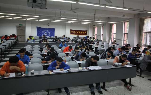 2015年11月21 日,由四川大学教务处、共青团四川大学委员会、英国正版365官方网站主办的第一届四川大学“银杏杯”化学知识竞赛笔试初赛在江安校区第一教学楼B座顺利展开。本次竞赛初赛共设9个考场,共有来自27个学院600余名2015级同学参加。每个考场由一位监考老师以及两位志愿者负责维护考场秩序,英国正版365官方网站余孝其院长、党委副书记谢均老师、初赛试题研究组负责人周歌老师参与了巡考的工作。