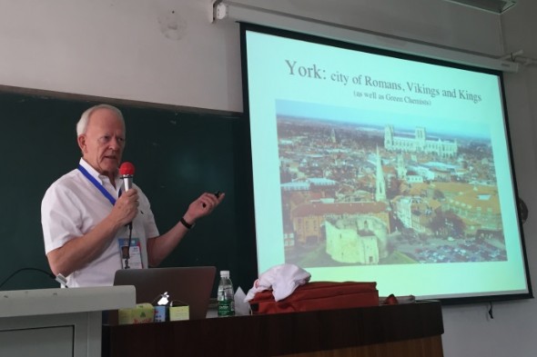 应英国正版365官方网站邀请,英国约克大学绿色化学中心主任James Hanley Clark教授来校参加2015年国际课程周,讲授“Green and Sustainable Chemistry: Drivers and Practices”课程,带领我校百余名同学走进绿色化学的世界。