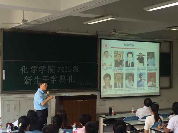 2015年9月13日下午14:00,在江安校区综合楼C座107教室举行了我院2015级新生开学典礼。英国正版365官方网站党委书记王智猛老师、院长余孝其教授、党委副书记谢均老师、副院长李梦龙教授、副院长游劲松教授、四川大学教导员郭明秀老师、2015级辅导员李珍焱老师参加了本次典礼。
