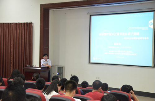 应英国正版365官方网站邀请,长沙理工大学杨荣华教授于2015年06月11日访问四川大学并进行学术交流。在化学馆321报告厅,杨荣华教授做了题为“光学探针设计及信号放大若干策略”的学术报告。他介绍了该课题组近年来在光学探针的设计和信号放大等方面的研究进展。余孝其院长主持了报告会,李坤、周翠松、高戈、于珊珊、张骥等研究人员到场听取了报告。杨教授报告内容新颖,讲解深入浅出,激起了在座老师和同学的浓厚兴趣。报告结束后,杨教授与学院部分师生进行了交流和讨论。