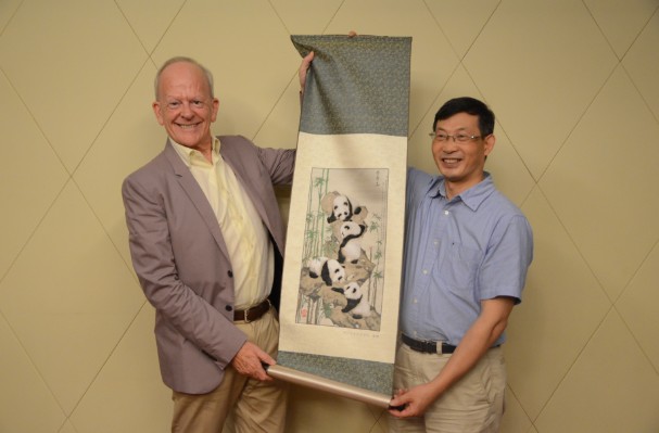 最后,余孝其院长代表学院将具有四川特色的熊猫蜀锦赠予每一位外籍教授,并将学院的情况介绍材料赠予外教,希望以本次国际课程周为平台,进一步推进学院与国际名校间的合作交流。