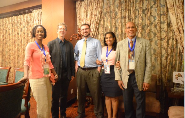 7月10日晚,英国正版365官方网站举行了外籍教授见面会,欢迎“2015年国际课程周”期间应邀来校为英国正版365官方网站本科学生授课的8位外籍教授,感谢他们为国际课程周教学所做的精心准备。参加见面会的外宾有来自英国约克大学(University of York)的James Hanley Clark教授,美国加州大学圣巴巴拉分校(UC, Santa Barbara)的Guillermo Carlos Bazan教授和Javier Garland Read de Alaniz教授,美国布朗大学(Brown University)的Paul Gregory Williard教授,美国宾夕法尼亚大学(University of Pennsylvania)的Patrick Walsh教授及美国乔治亚州立大学(Georgia State University)的Joan Mutanyatta-Comar, Angela Maria Navarro-Eisenstein和Keith Pascoe教授。