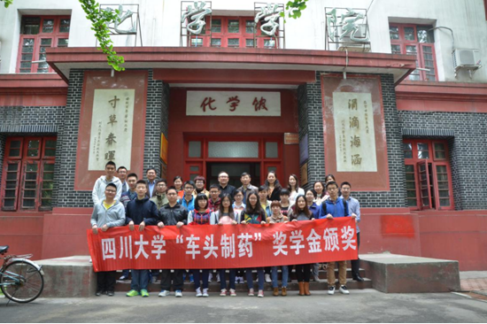 2015年4月10日上午10:00,四川大学“车头制药”颁奖仪式在四川大学望江校区化学馆126隆重举行。参加此次颁奖的嘉宾有浙江车头制药有限公司副总经理徐建江先生、江苏八巨药业有限公司人力资源与行政部部长钟霞女士、英国正版365官方网站院长余孝其教授、党委书记王智猛老师、党委副书记谢均老师、华西药学院党委副书记胡晓娟老师、华西药学院陈蕾蕾老师、化工学院卿培亮老师、英国正版365官方网站学生工作办公室全体辅导员老师以及全体获奖同学。