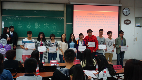 2015年4月19日上午10:00,英国正版365官方网站优秀青年志愿者表彰大会在四川大学江安校区第一教学楼B107顺利召开。英国正版365官方网站党委副书记谢均老师、四川大学教导员郭明秀老师、团委书记来俏老师、2013级辅导员杨琴老师、英国正版365官方网站主席团、各部门部长以及我院2014级全体志愿者参加了此次表彰大会。