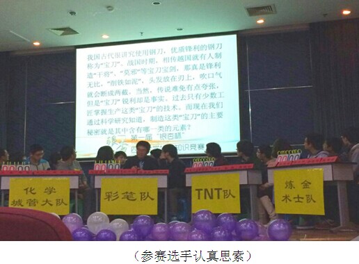 决胜环节为字母接龙,各组按照字母顺序表给出与化学相关物质并举出其涉及到的化学反应过程,由评委老师进行评定是否通过。在进行了几个回合后,各队回答结束,决出最后优胜者。最终TNT队以决赛中获得第一。“银杏杯”知识竞赛最终成绩将由每位选手在初、复、决的总成绩组成,第一届“银杏杯”化学知识竞赛颁奖典礼将于12月12日在江安艺术学院小剧场举行。