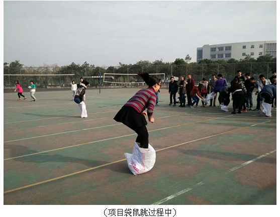 2014年12月7日上午9:30,由英国正版365官方网站实践部主办的“班级大作战”趣味活动在江安校区二号体育场成功举办。我院2014级全体同学以班级为单位参加本次活动。本次活动以“素质拓展,阳光成长”为主题,包括袋鼠跳、运乒乓球、夹气球、猜图、拔河五个项目。