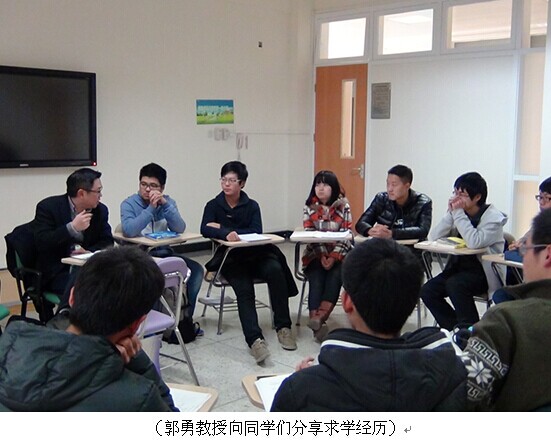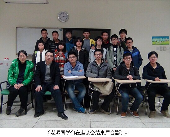 2014年12月18日下午17:00,我院2014级拔尖班名誉班主任见面会在江安校区综合楼B座204教室顺利举行。四川大学校长助理、党委学工部部长郭勇教授以名誉班主任的身份与我院2014级拔尖班的同学们展开了一场轻松和谐的座谈会。