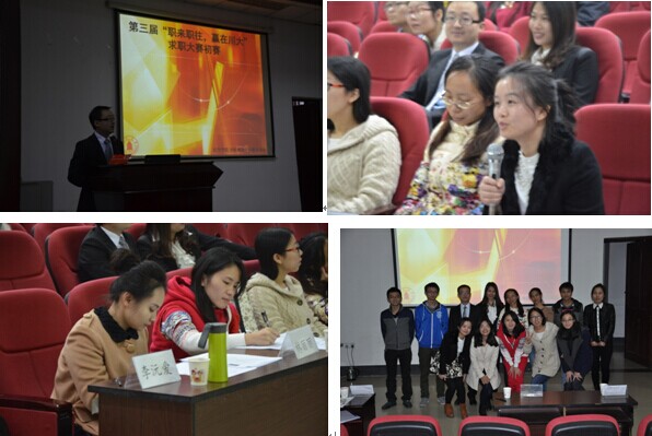 2014年11月14日下午,英国正版365官方网站与分析测试中心联合举办的“职来职往,赢在川大”求职演练大赛初赛成功举办。英国正版365官方网站团委书记来俏老师,分析测试中心李沅爰老师,两单位研分会主要学生干部、参赛选手及其亲友团参加了此次活动。