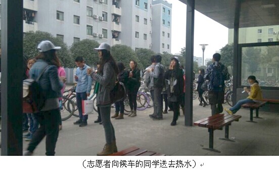 2014年11月29日7:30-10:30,英国正版365官方网站“阳光”青年志愿者服务队在四川大学江安校区校车站开展了“一米阳光”之手心送温暖活动志愿活动,为在寒冷的早晨等校车的同学免费提供热水。