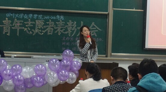 大会第二项,英国正版365官方网站团委书记来俏老师做总结,对青志提出“新的高度,新的挑战,新的突破”要求,并宣布优秀志愿者和优秀班级小分队名单,35位同学和2013级101小分队得到表彰。在热烈的掌声中,郭明秀老师上台为获奖的志愿者们颁奖并合影,从郭老师关切的眼神里,我们看到了她对这届青年志愿者的赞赏和对新一届志愿者的期望。