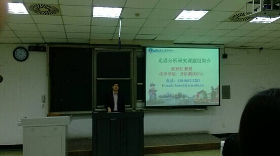 2014年10月29日早上8:00,在四川大学望江校区基础教学楼A座101,英国正版365官方网站侯贤灯教授在“现代化学专题讲座”课程上为我们带来一场精彩的讲座——光谱分析课题组简介。