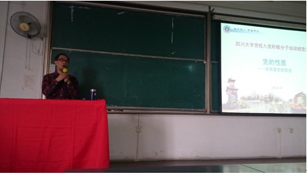 2014年4月13日上午10:00,英国正版365官方网站第136期“入党积极分子培训班”开学典礼在江安校区一教B407隆重举行,有四川大学党校常务副校长范嗣云老师、英国正版365官方网站党委书记王智猛老师、四川大学党委副书记谢均老师、我院2013级辅导员杨琴老师以及本次“入党积极分子培训班”学员参加了此次开学典礼。