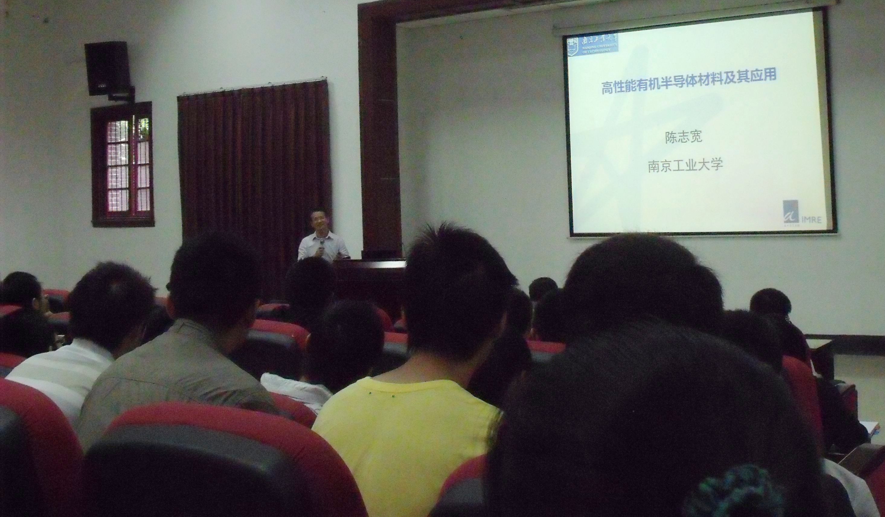 2013年9月5日上午,南京工业大学先进材料研究院陈志宽教授应英国正版365官方网站邀请,在化学馆321报告厅,作了题为《Development of High Performance Organic Semiconductors for Organic Electronics》的学术报告。陈教授分别从有机电致发光、有机光伏和有机场效应晶体管三个方面介绍了他们课题组在三类有机光电材料的设计制备和器件应用方面的研究工作,很多结果至今还保持着国际领先的水平。随后,陈教授还介绍了南京工业大学先进材料研究院的筹建情况,热忱欢迎立志于从事有机光电的老师和学生的合作和加盟。最后,陈教授还与参会老师和同学就本领域的一些热点问题开展了交流讨论。陈志宽教授简介:南京工业大学先进材料研究院教授,博士生导师。1989年毕业于北京大学,获得应用化学专业学士学位,并分别于1992、1995年获得北京大学有机化学专业硕士及博士学位。1995年,加入新加坡国立大学化学系从事博士后工作,1998年加入新加坡材料研究与工程研究院从事有机电子学的研究。在研究院工作期间,历任研究员,高级研究员,首席科学家,产业化项目负责人。2002年至2006年间任“分子与功能材料部”副主任;2007年至2010年间任“合成与集成部”副主任;2011年任“合成与集成部”主任。2006年至2010年间担任新加坡南洋理工大学材料与工程学院兼职副教授;2011年至2012年间担任新加坡国立大学化学系兼职教授。同期担任新加坡多家公司的首席技术顾问。陈教授主要从事有机光电材料的设计与合成、材料光电特性及薄膜特性、材料的器件特性及其与材料结构的构效关系研究,同时也探索器件制程、器件物理、器件集成等方面的研究。