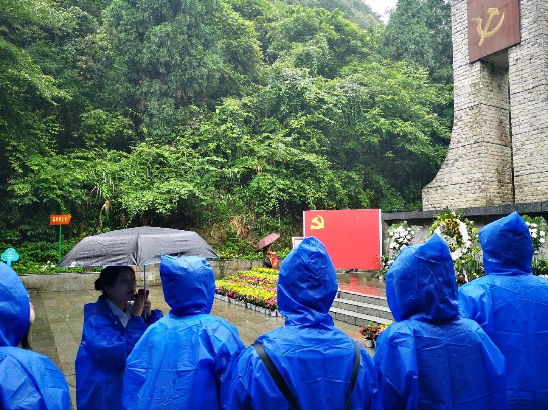 在红军山上,实践团举行了祭奠革命英烈活动,全体成员肃立,面向革命烈士纪念塔进行默哀,默默缅怀逝去的英魂。随后,向革命烈士敬献花篮,瞻仰革命烈士纪念碑,深切缅怀为党的事业和人民利益英勇献身的革命烈士;重温入党誓词,进一步坚定入党初心。