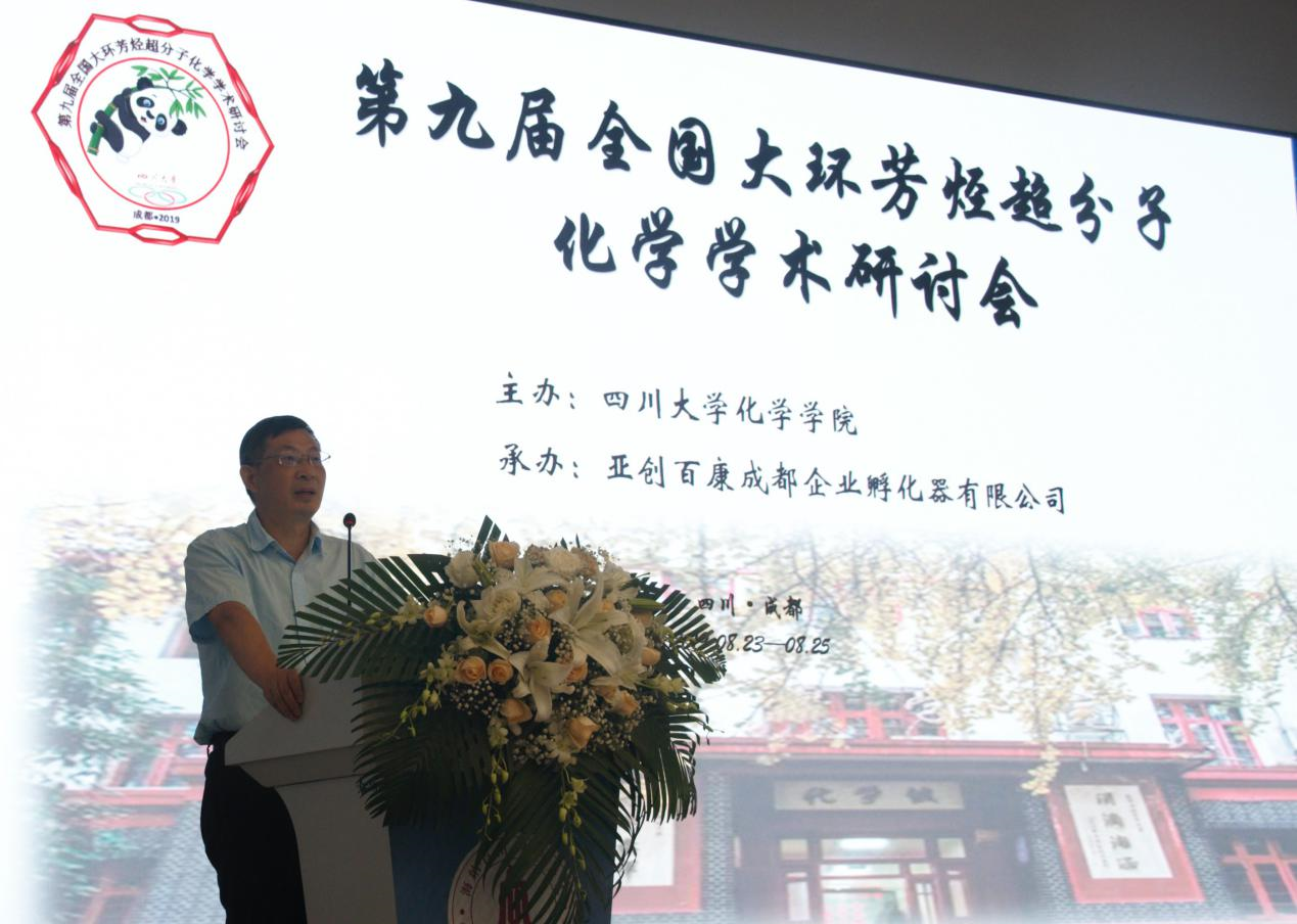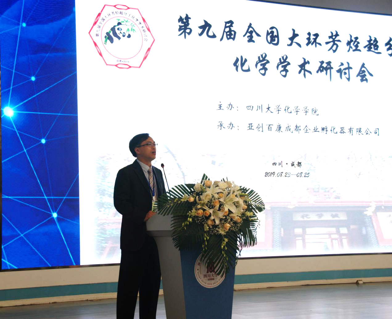 8月24日,第九届全国大环芳烃超分子化学学术研讨会在我校汇文楼演播厅(主会场)及东三教150(分会场)举行。本次会议由英国正版365官方网站主办。大会汇聚了大环芳烃研究领域的专家和学者,共同探讨大环超分子化学的最新研究进展。来自清华大学、北京师范大学、中国科学院化学所、国家纳米科学中心、复旦大学、上海交通大学、上海有机化学研究所、浙江大学、南开大学、天津大学、南京大学、吉林大学、南方科技大学、新加坡纳米生物国家实验室、澳门大学和四川大学等51所学校及中科院的专家学者、师生共300余人参加了开幕式。
